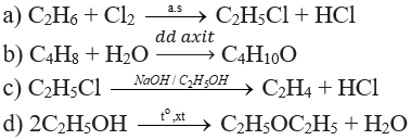 Các phản ứng sau đây thuộc loại phản ứng nào (phản ứng thế, phản ứng cộng, phản ứng tách) ?